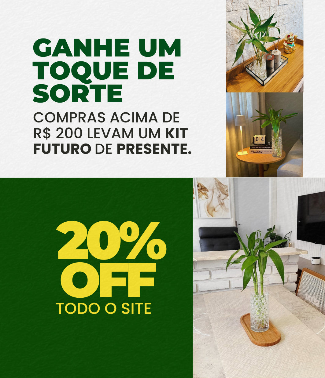 Descubra o equilíbrio natural e a beleza do KIT Energia, uma fusão harmoniosa entre design e natureza. Composto pelo bambu da sorte brotado, este conjunto é ideal para decorar ambientes internos com elegância e serenidade.