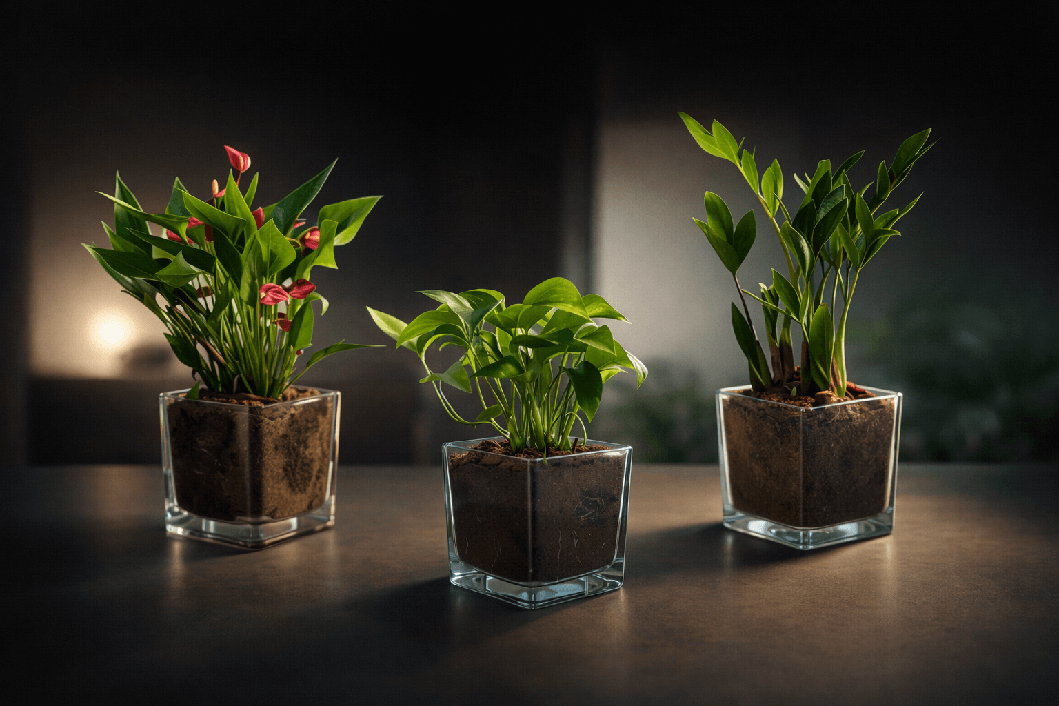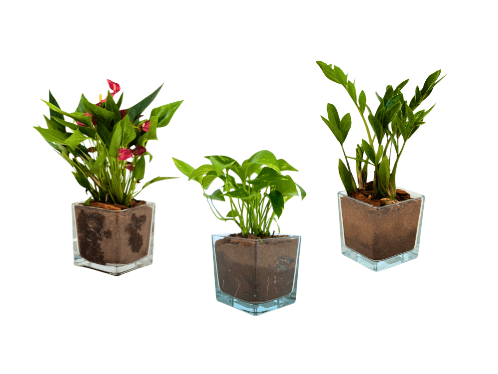 • 1x Kit Fortuna (Zamioculca plantada em substrato, em vaso de vidro)