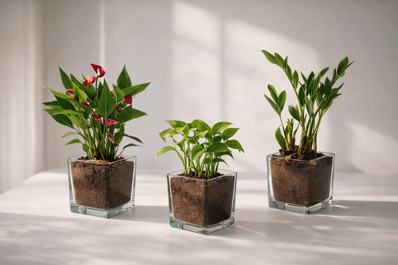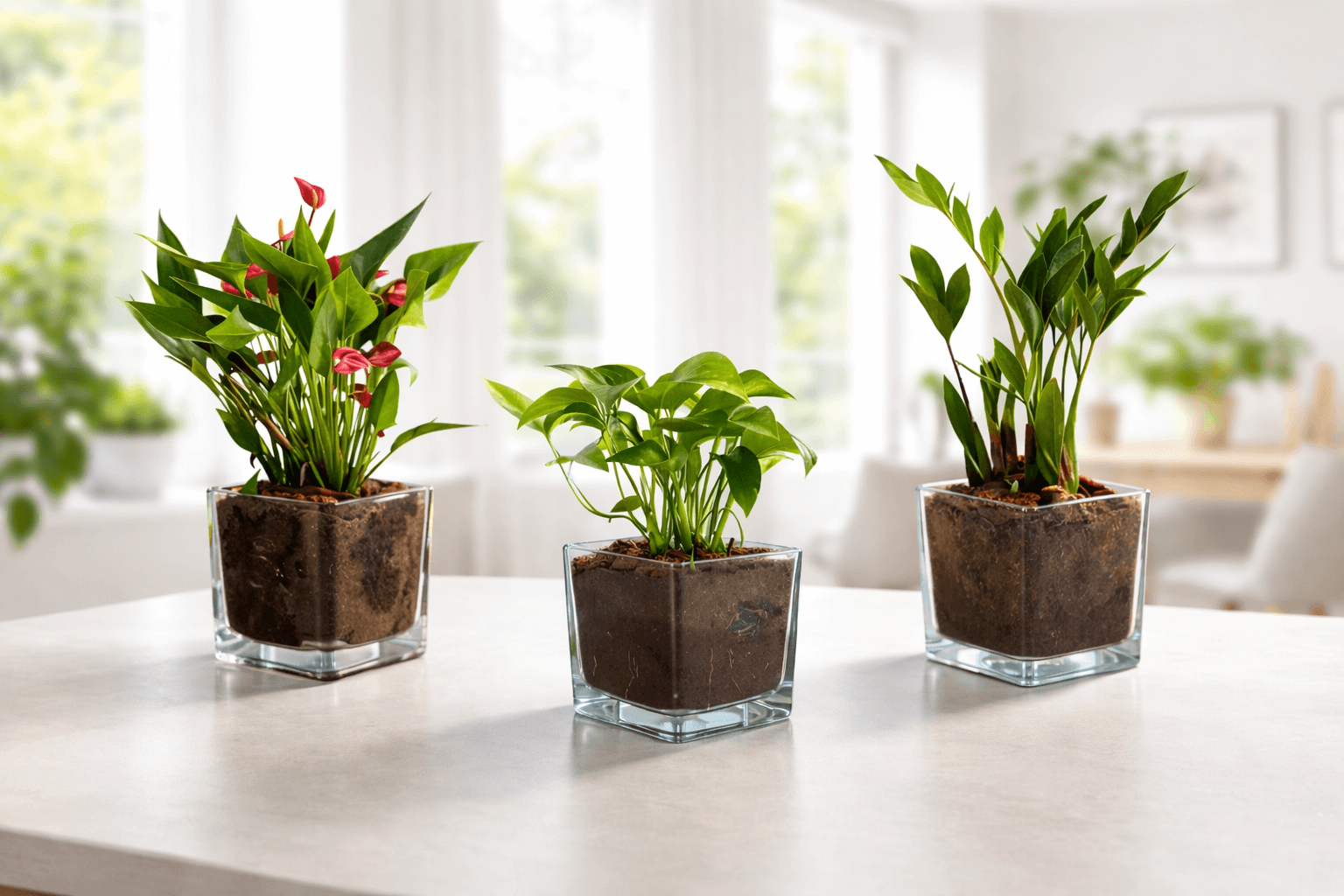 • 1x Kit Alegria (Antúrio Vermelho plantado em substrato, em vaso de vidro)