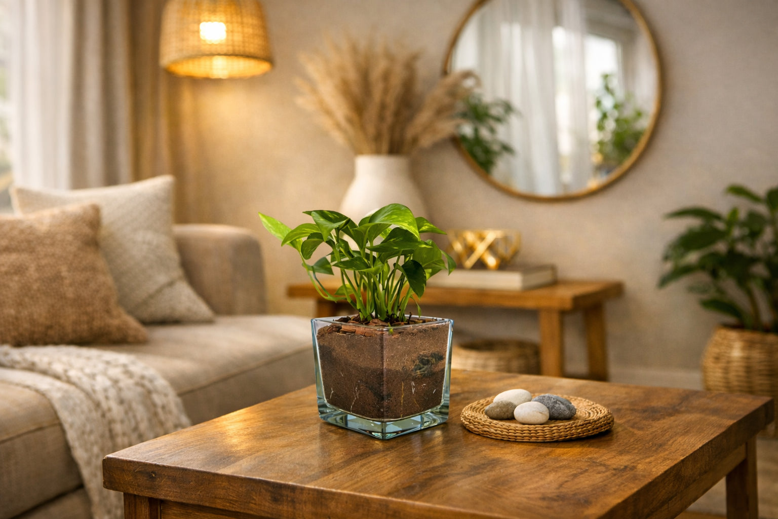 A Jiboia se adapta facilmente a ambientes internos, não precisa de sol direto e é muito simples de cuidar perfeita para quem quer verde de verdade, mas sem bagunça e sem dificuldade.